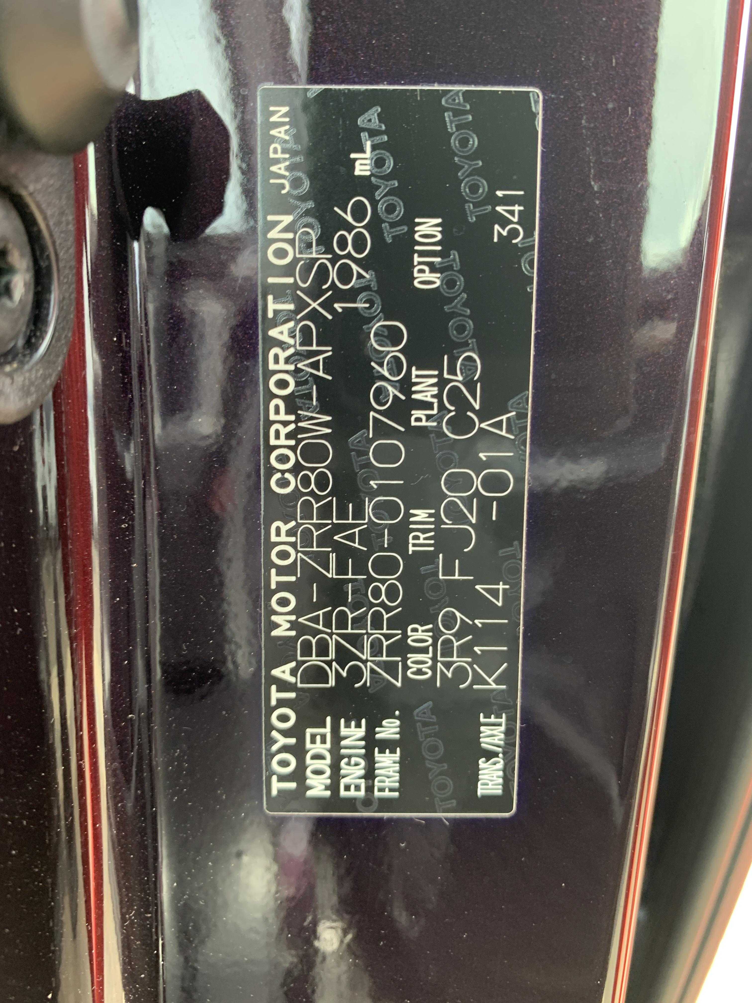 | Year | 2015/3 | Chassis | ZRR80W-0107960 |