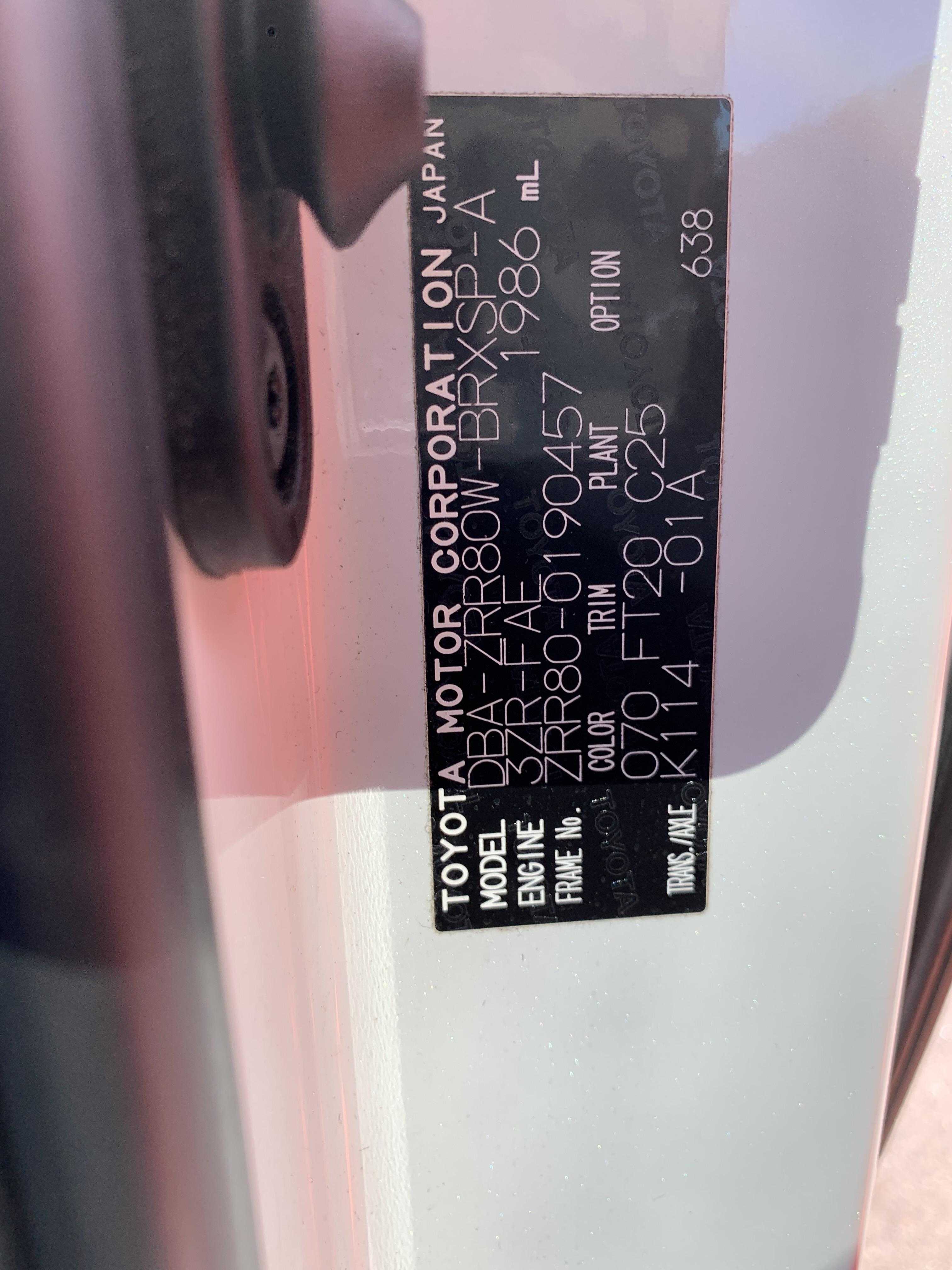 | Year | 2015/12 | Chassis | ZRR80W-0190457 |